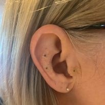 The points on the ear are very small, either Vaccaria seeds or Tourmaline beads are used as ear seeds, secured with surgical tape. They are completely non-invasive, no needles.....